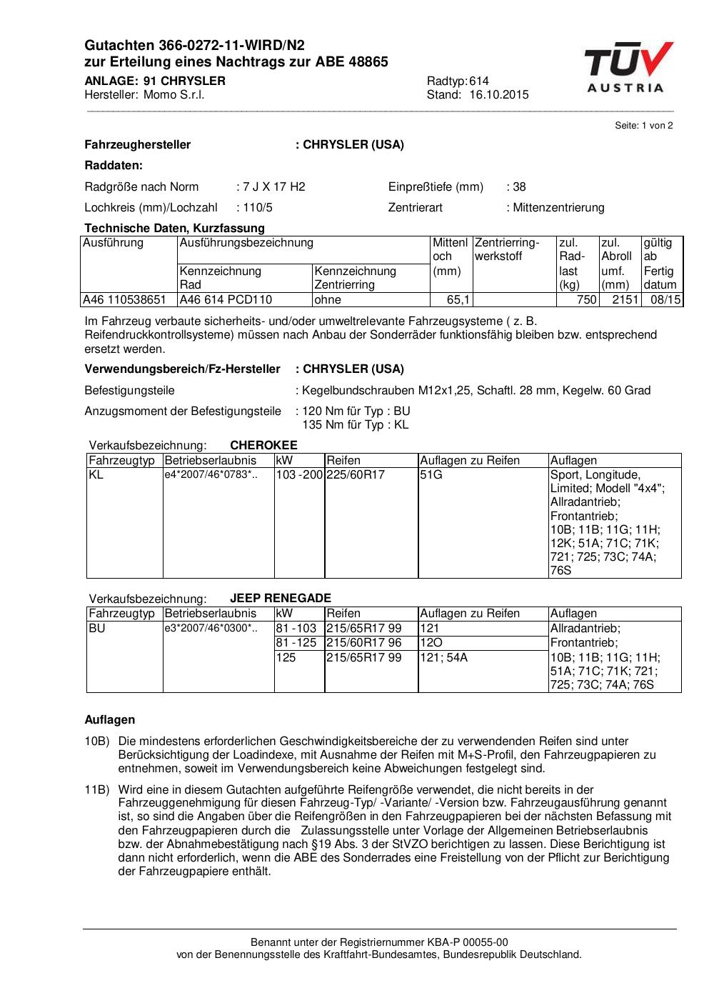 • Stimmt die KBA-Nummer auf der Felge mit diesem Dokument überein?