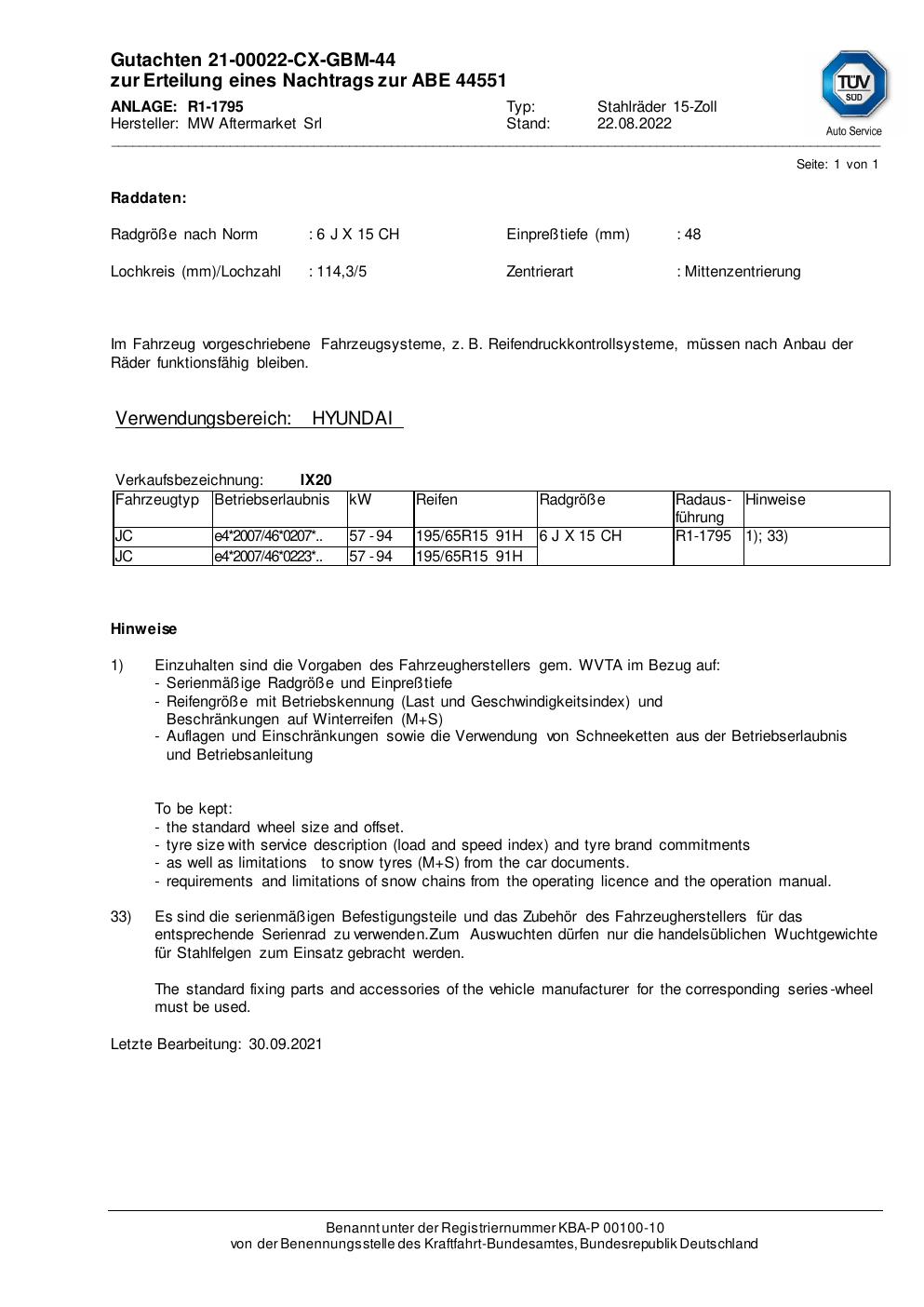 • Stimmt die KBA-Nummer auf der Felge mit diesem Dokument überein?