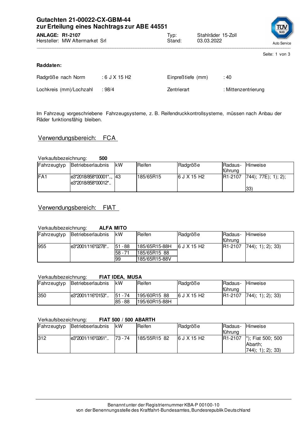 • Stimmt die KBA-Nummer auf der Felge mit diesem Dokument überein?