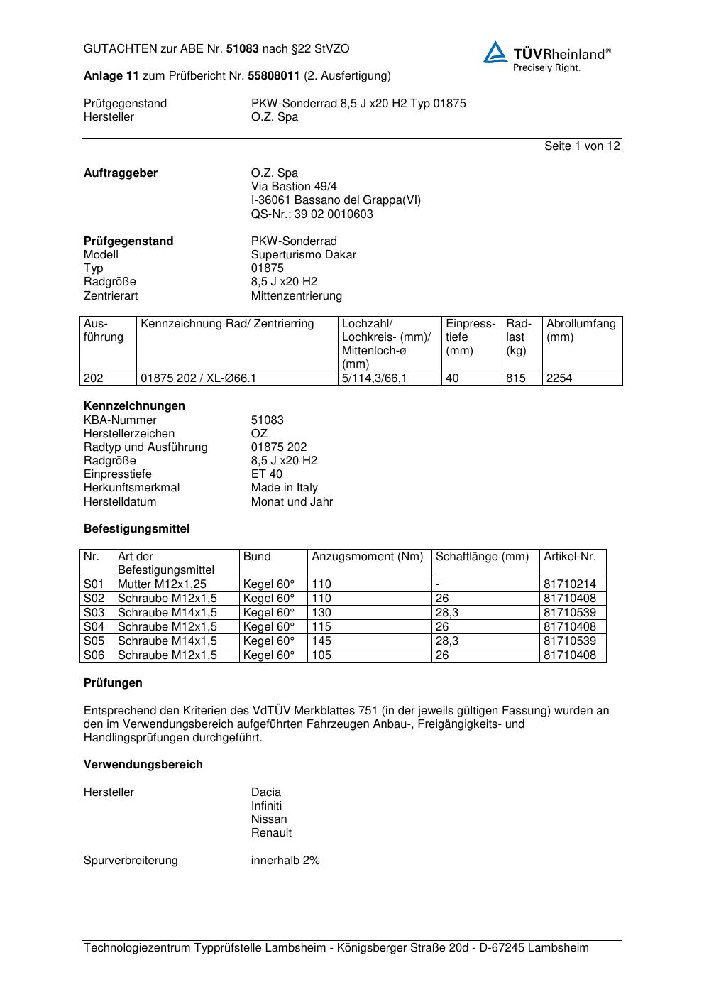 Dieses abe gehört zur Felge O.Z. Racing 01875 in ET0 mit KBA 51083. Die Seite ist dafür gedacht, dass du schnell prüfen kannst, ob KBA, Design und Größe zu deiner Felge passen und danach direkt das richtige PDF lädst.