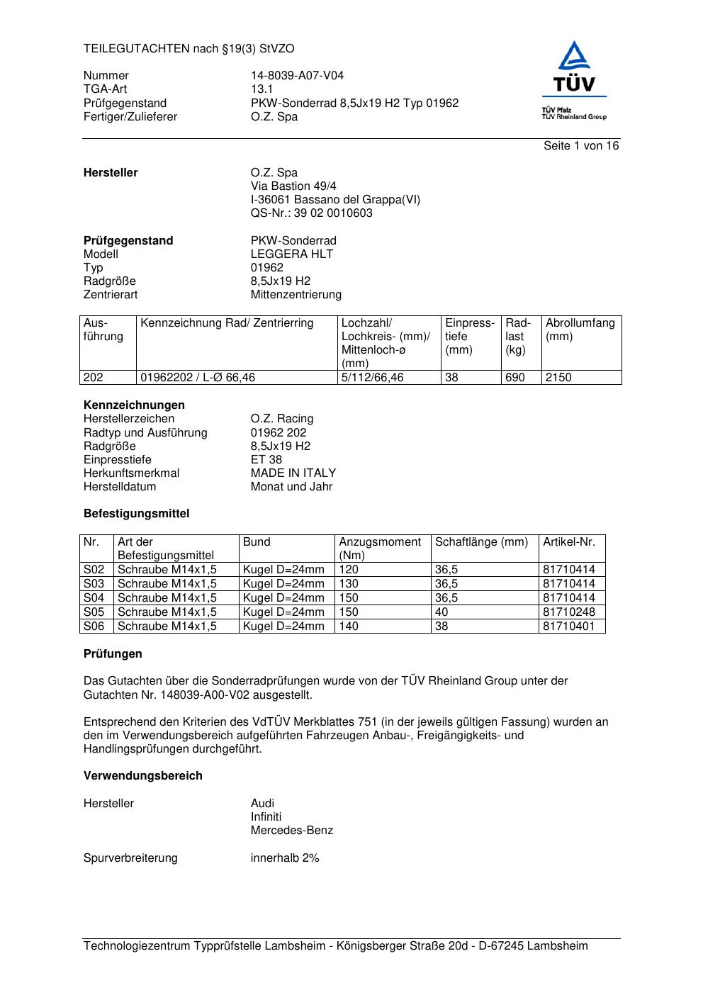 teilegutachten 14-8039-a07-v04 O.Z. Spa (O.Z. Racing) 01962