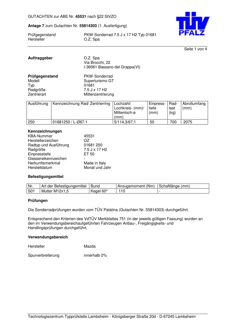 • Stimmt die KBA-Nummer auf der Felge mit diesem Dokument überein?