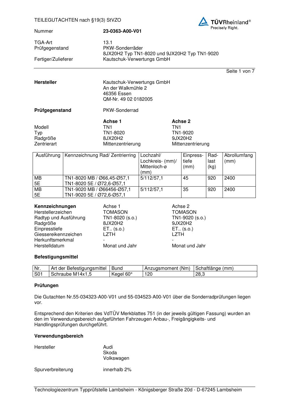 Felgengutachten / ABE für Alufelgen Platin P113 (8Jx2 ET 0, Mittenloch 0 mm) mit KBA 54613 (Zertifikatsnummer 00414306). Hier kostenlos als PDF herunterladen. Der Download-Link ist 24 Stunden gültig und kann bis zu zwei Mal verwendet werden.