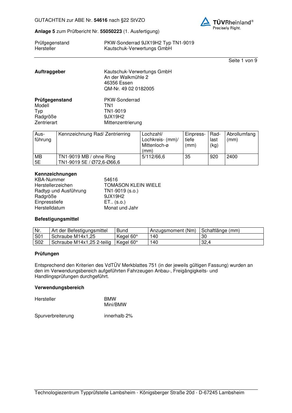 Felgengutachten / ABE für Alufelgen Platin P113 (9Jx19 ET 0, Mittenloch 0 mm) mit KBA 54616 (Zertifikatsnummer 00419175). Hier kostenlos als PDF herunterladen. Der Download-Link ist 24 Stunden gültig und kann bis zu zwei Mal verwendet werden.