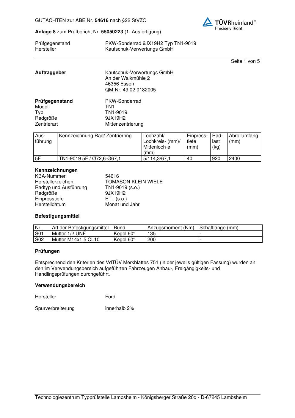Felgengutachten / ABE für Alufelgen Platin P113 (9Jx19 ET 0, Mittenloch 0 mm) mit KBA 54616 (Zertifikatsnummer 00419166). Hier kostenlos als PDF herunterladen. Der Download-Link ist 24 Stunden gültig und kann bis zu zwei Mal verwendet werden.