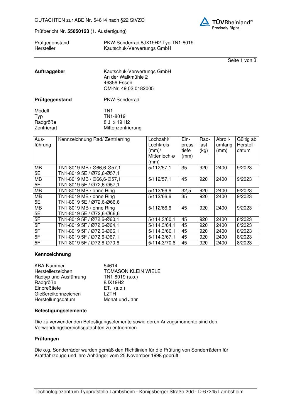 Felgengutachten / ABE für Alufelgen Platin P113 (8Jx19 ET 0, Mittenloch 0 mm) mit KBA 54614 (Zertifikatsnummer 00419287). Hier kostenlos als PDF herunterladen. Der Download-Link ist 24 Stunden gültig und kann bis zu zwei Mal verwendet werden.