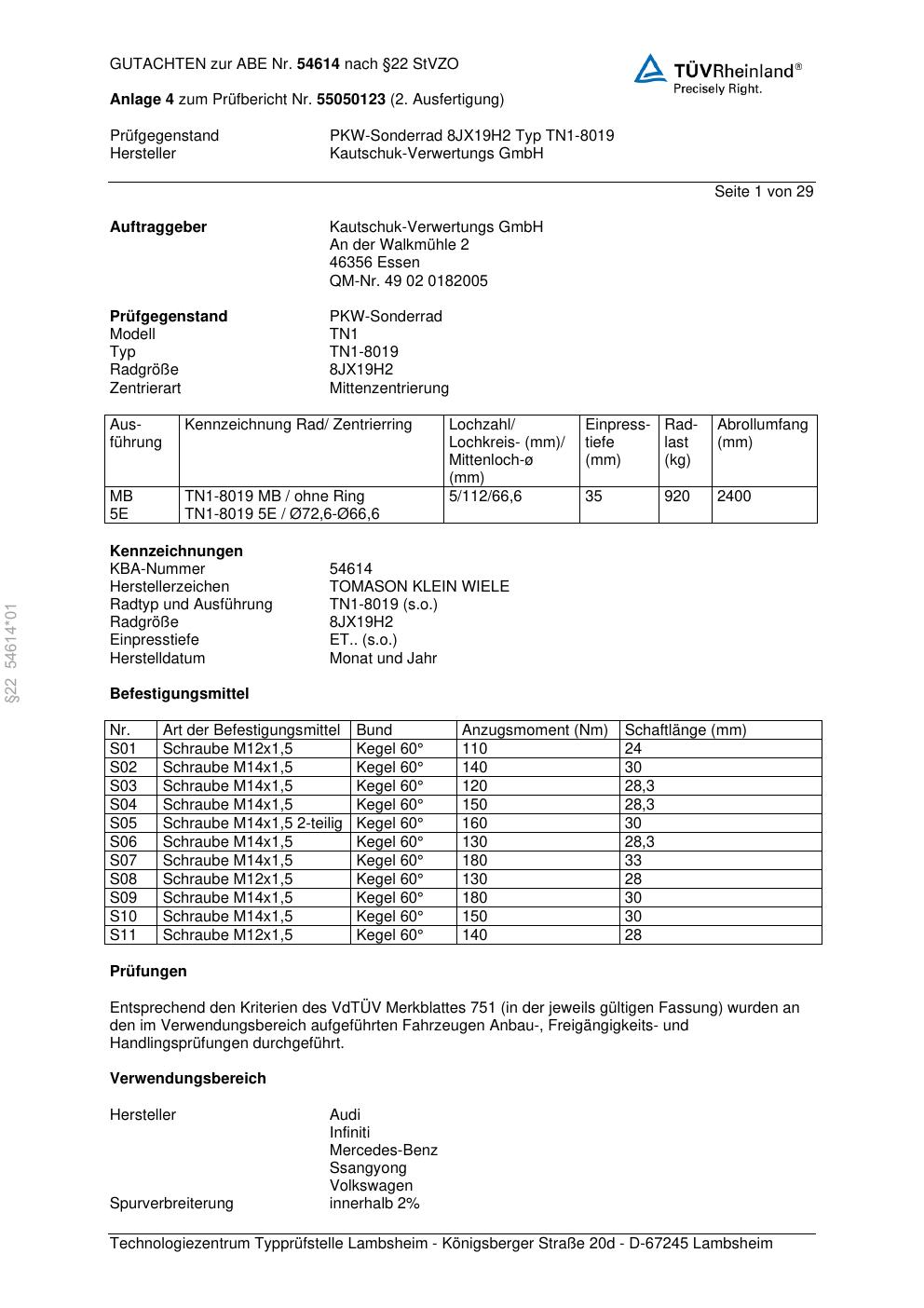 Felgengutachten / ABE für Alufelgen Platin P113 (8Jx19 ET 0, Mittenloch 0 mm) mit KBA 54614 (Zertifikatsnummer 00433378). Hier kostenlos als PDF herunterladen. Der Download-Link ist 24 Stunden gültig und kann bis zu zwei Mal verwendet werden.