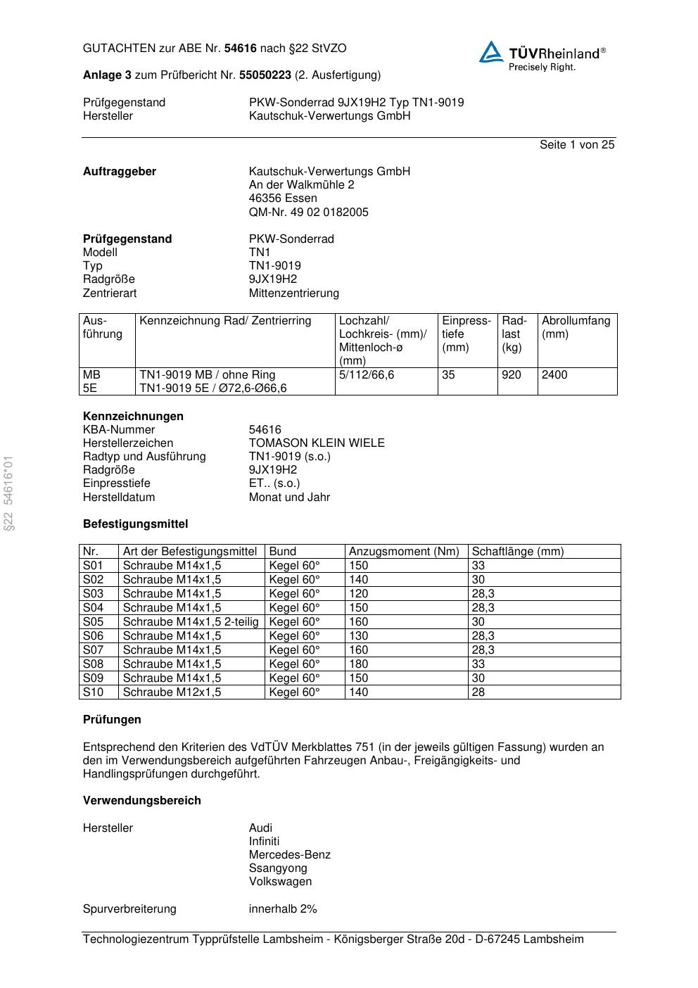 Felgengutachten / ABE für Alufelgen Platin P113 (9Jx19 ET 0, Mittenloch 0 mm) mit KBA 54616 (Zertifikatsnummer 00433380). Hier kostenlos als PDF herunterladen. Der Download-Link ist 24 Stunden gültig und kann bis zu zwei Mal verwendet werden.