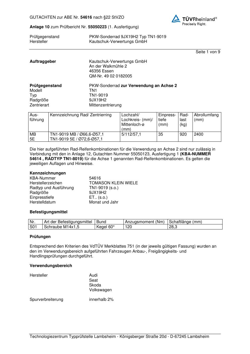 Felgengutachten / ABE für Alufelgen Platin P113 (9Jx19 ET 0, Mittenloch 0 mm) mit KBA 54616 (Zertifikatsnummer 00419183). Hier kostenlos als PDF herunterladen. Der Download-Link ist 24 Stunden gültig und kann bis zu zwei Mal verwendet werden.