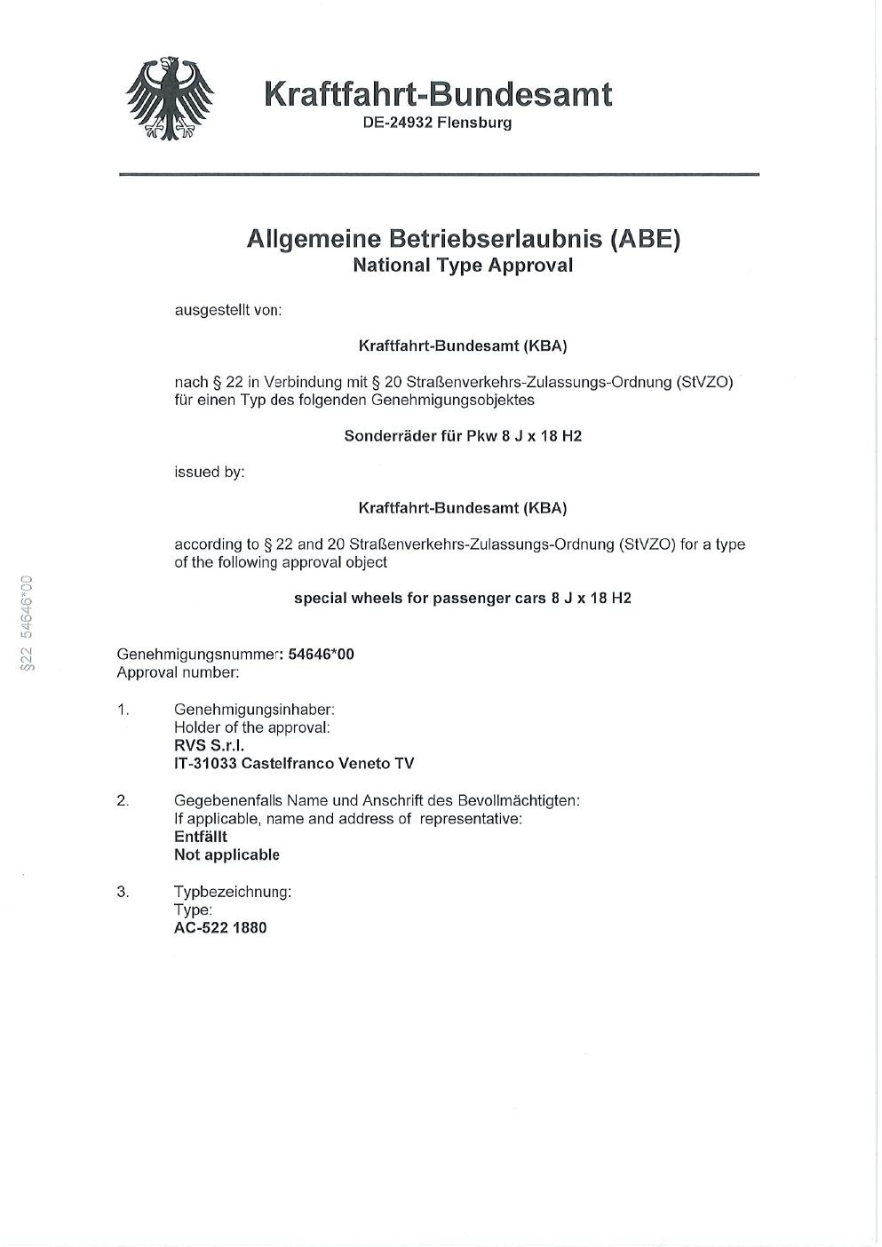 Felgengutachten / ABE für Alufelgen Platin P116 (8Jx18 ET 0, Mittenloch 0 mm) mit KBA 54646 (Zertifikatsnummer 00401772). Hier kostenlos als PDF herunterladen. Der Download-Link ist 24 Stunden gültig und kann bis zu zwei Mal verwendet werden.