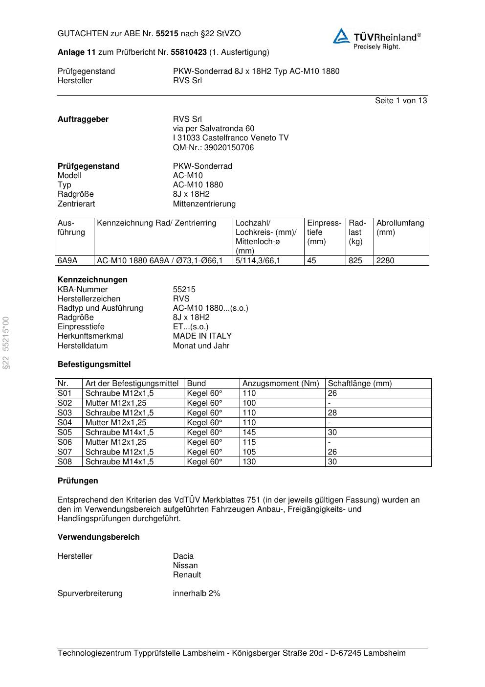 Felgengutachten / ABE für Alufelgen Platin P118 (8Jx18 ET 0, Mittenloch 0 mm) mit KBA 55215 (Zertifikatsnummer 00420480). Hier kostenlos als PDF herunterladen. Der Download-Link ist 24 Stunden gültig und kann bis zu zwei Mal verwendet werden.