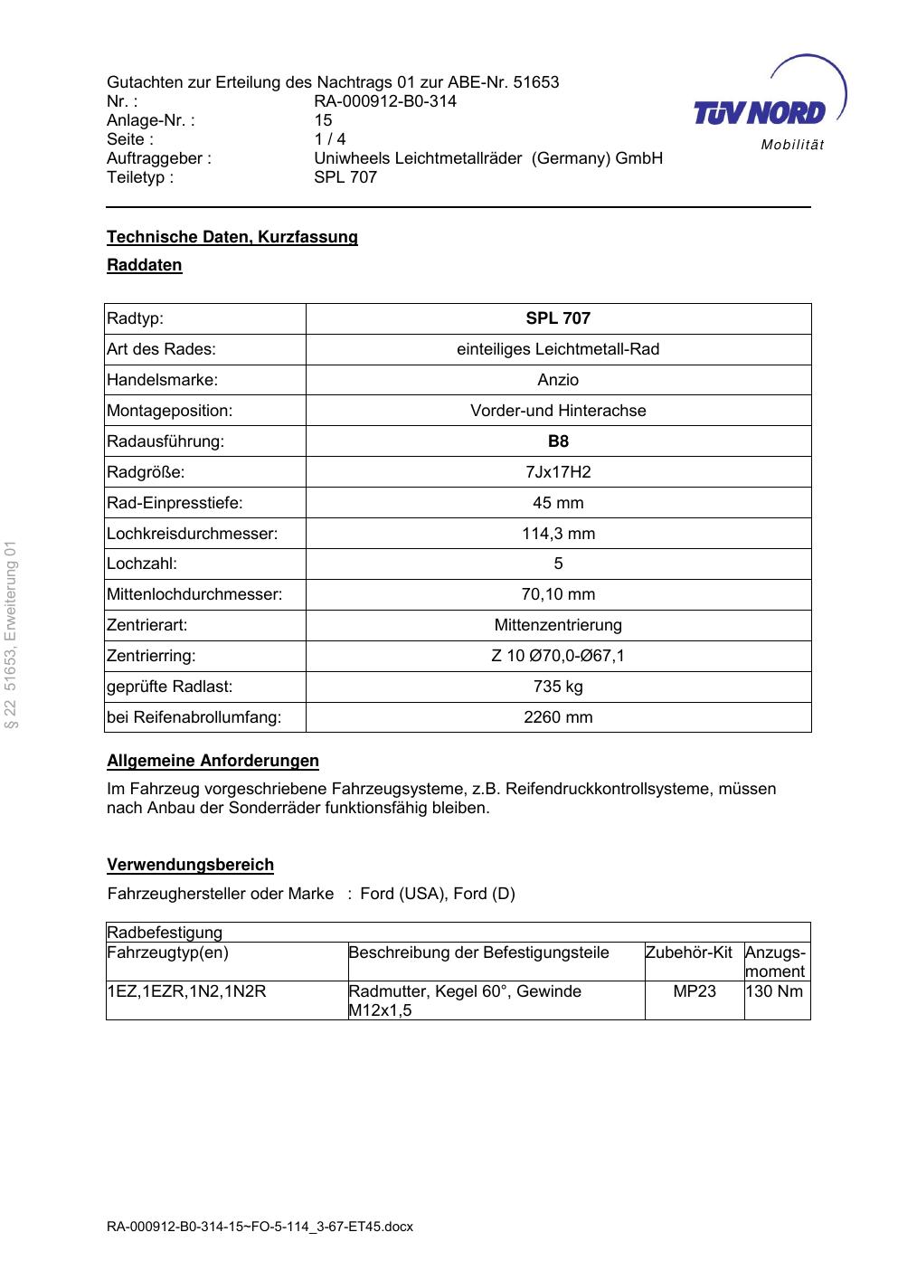 Felgengutachten / ABE für Alufelgen Platin P73 (7Jx17 ET 0, Mittenloch 0 mm) mit KBA 51653 (Zertifikatsnummer RA-000912-B0-314-15-FO-5-114). Hier kostenlos als PDF herunterladen. Der Download-Link ist 24 Stunden gültig und kann bis zu zwei Mal verwendet werden.