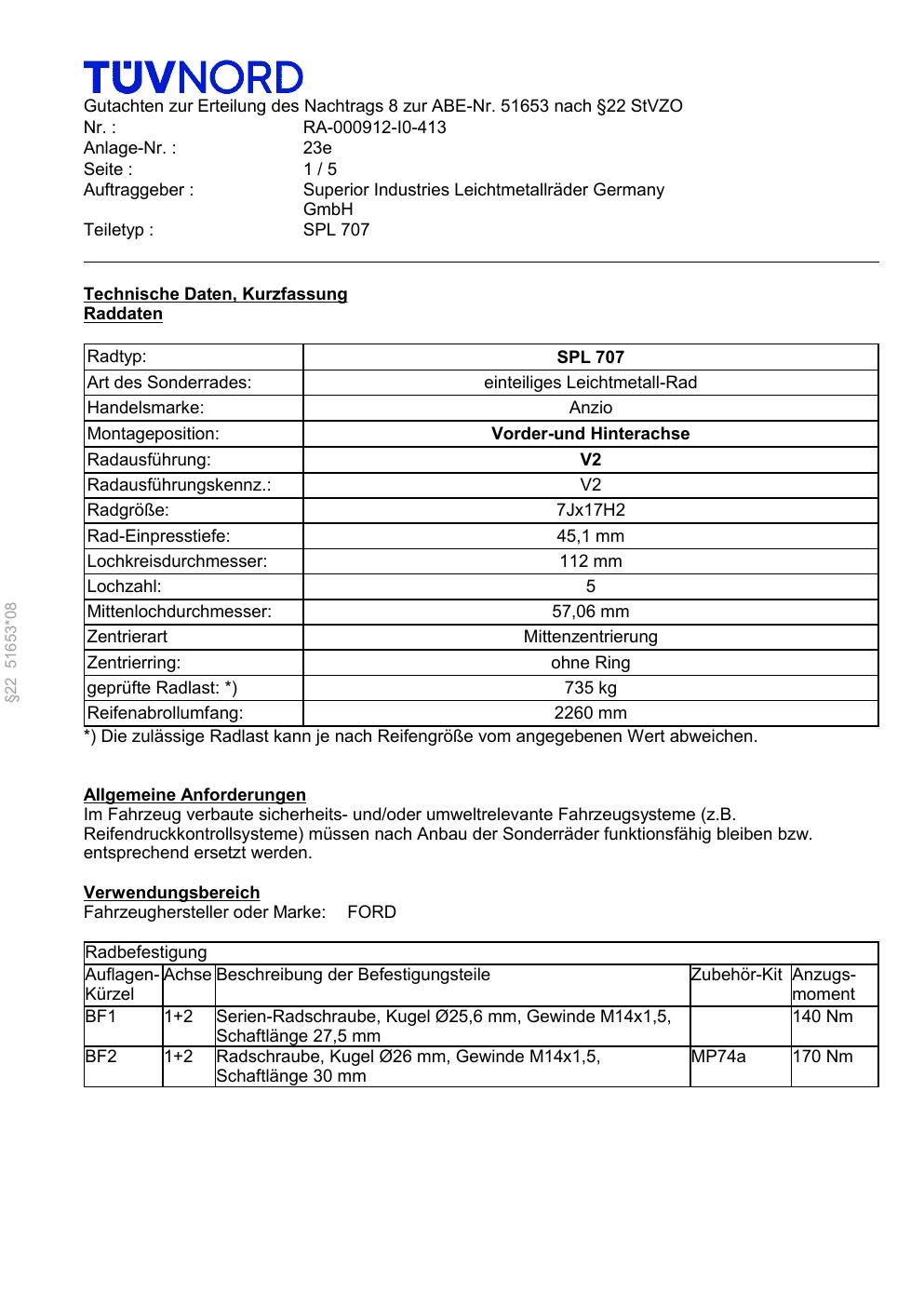Felgengutachten / ABE für Alufelgen Platin P73 (7Jx17 ET 0, Mittenloch 0 mm) mit KBA 51653 (Zertifikatsnummer RA-000912-I0-413-23e). Hier kostenlos als PDF herunterladen. Der Download-Link ist 24 Stunden gültig und kann bis zu zwei Mal verwendet werden.