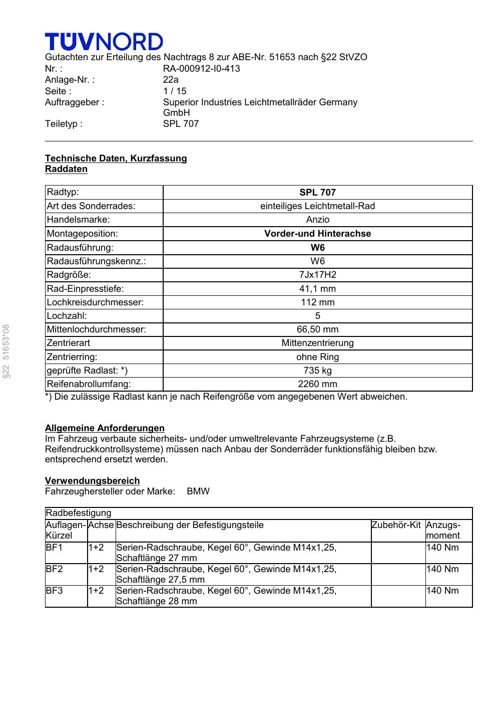 Felgengutachten / ABE für Alufelgen Platin P73 (7Jx17 ET 0, Mittenloch 0 mm) mit KBA 51653 (Zertifikatsnummer RA-000912-I0-413-22a). Hier kostenlos als PDF herunterladen. Der Download-Link ist 24 Stunden gültig und kann bis zu zwei Mal verwendet werden.