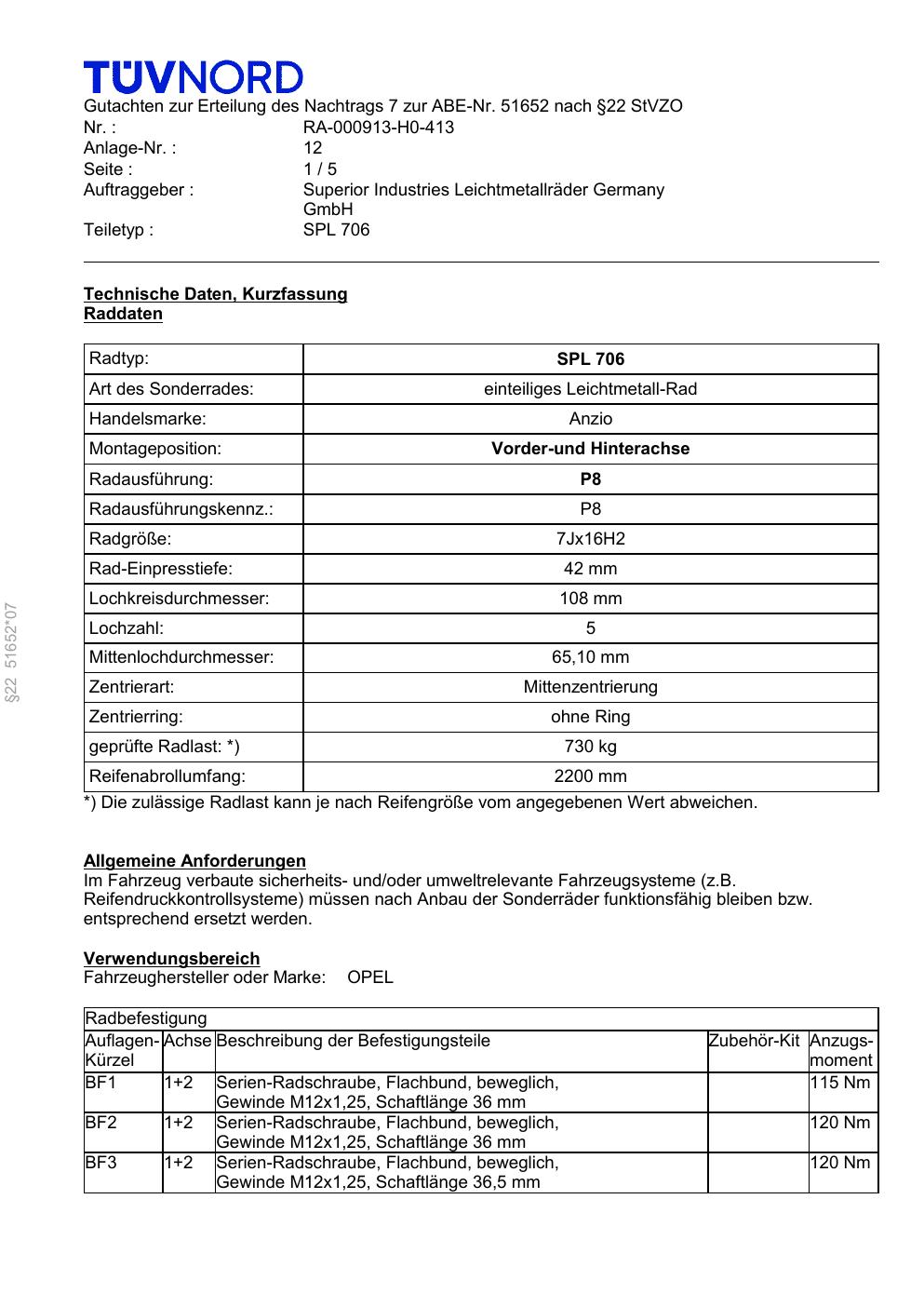 Felgengutachten / ABE für Alufelgen Platin P73 (7Jx16 ET 0, Mittenloch 0 mm) mit KBA 51652 (Zertifikatsnummer RA-000913-H0-413-12). Hier kostenlos als PDF herunterladen. Der Download-Link ist 24 Stunden gültig und kann bis zu zwei Mal verwendet werden.