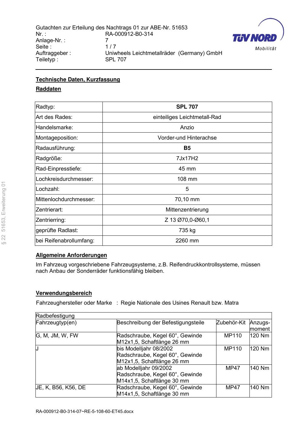 Felgengutachten / ABE für Alufelgen Platin P73 (7Jx17 ET 0, Mittenloch 0 mm) mit KBA 51653 (Zertifikatsnummer RA-000912-B0-314-07-RE-5-108-60-ET45). Hier kostenlos als PDF herunterladen. Der Download-Link ist 24 Stunden gültig und kann bis zu zwei Mal verwendet werden.