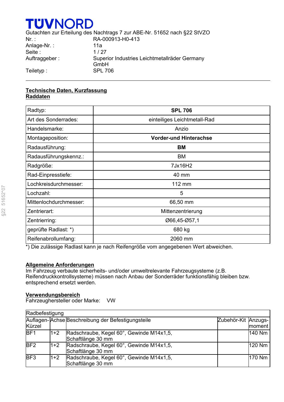 Felgengutachten / ABE für Alufelgen Platin P73 (7Jx16 ET 0, Mittenloch 0 mm) mit KBA 51652 (Zertifikatsnummer RA-000913-H0-413-11a). Hier kostenlos als PDF herunterladen. Der Download-Link ist 24 Stunden gültig und kann bis zu zwei Mal verwendet werden.