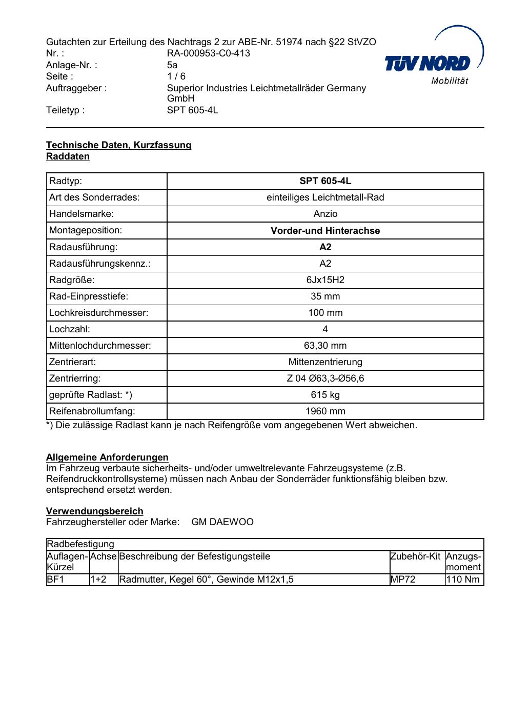 Felgengutachten / ABE für Alufelgen Platin P84 (6Jx15 ET 0, Mittenloch 0 mm) mit KBA 51974 (Zertifikatsnummer RA-000953-C0-413-05a-DW-4-100-56). Hier kostenlos als PDF herunterladen. Der Download-Link ist 24 Stunden gültig und kann bis zu zwei Mal verwendet werden.