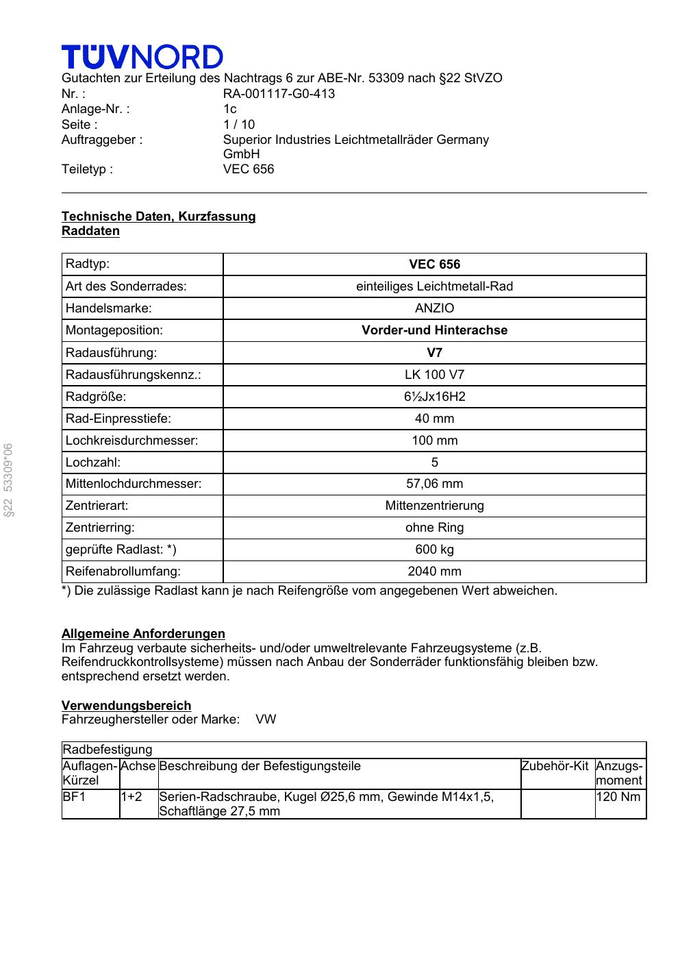 Felgengutachten / ABE für Alufelgen Platin P95 (6.5Jx16 ET 0, Mittenloch 0 mm) mit KBA 53309 (Zertifikatsnummer RA-001117-G0-413-1c). Hier kostenlos als PDF herunterladen. Der Download-Link ist 24 Stunden gültig und kann bis zu zwei Mal verwendet werden.