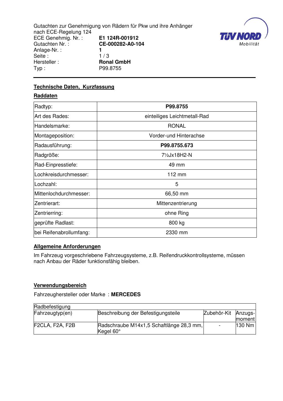 Felgengutachten / ABE für Alufelgen Platin P99 (7.5Jx18 ET 0, Mittenloch 0 mm) mit KBA 53465 (Zertifikatsnummer 53465). Hier kostenlos als PDF herunterladen. Der Download-Link ist 24 Stunden gültig und kann bis zu zwei Mal verwendet werden.