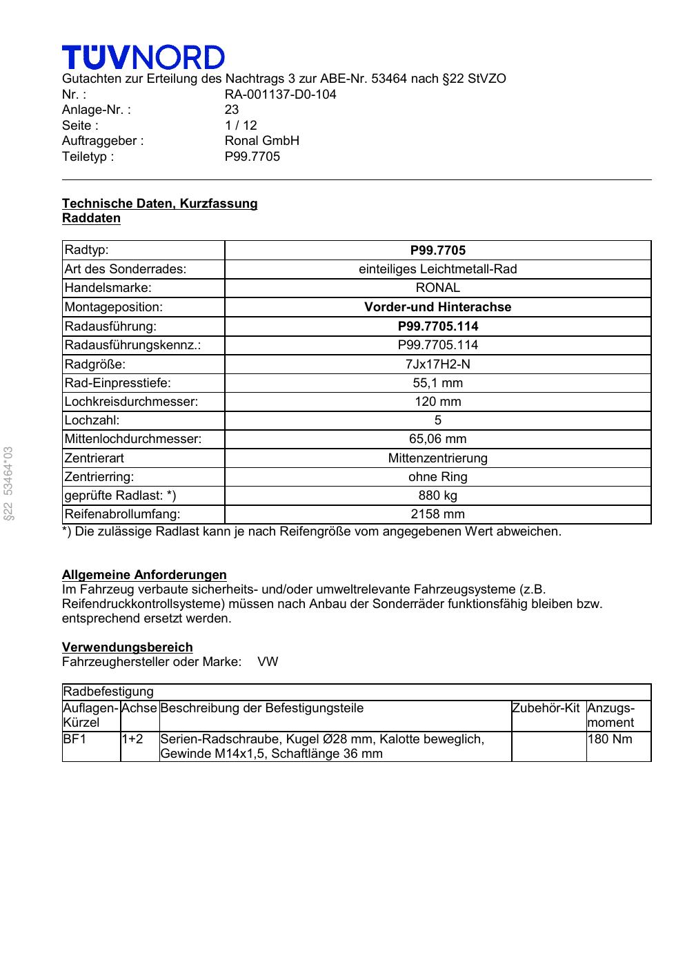 Felgengutachten / ABE für Alufelgen Platin P99 (7Jx17 ET 0, Mittenloch 0 mm) mit KBA 53464 (Zertifikatsnummer RA-001137-D0-104-23). Hier kostenlos als PDF herunterladen. Der Download-Link ist 24 Stunden gültig und kann bis zu zwei Mal verwendet werden.