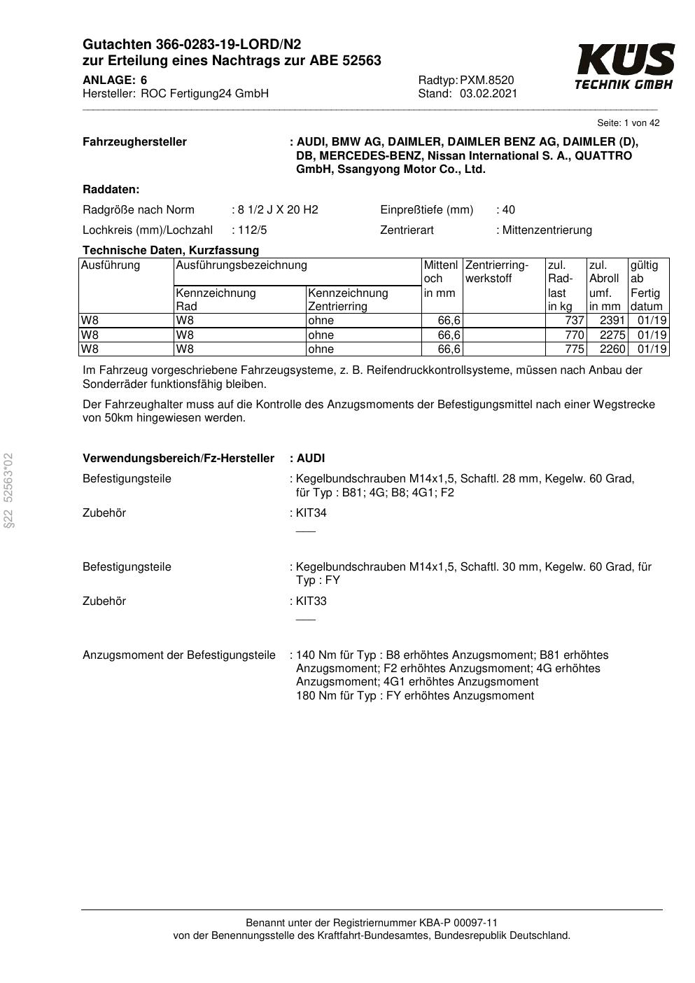 • Stimmt die KBA-Nummer auf der Felge mit diesem Dokument überein?