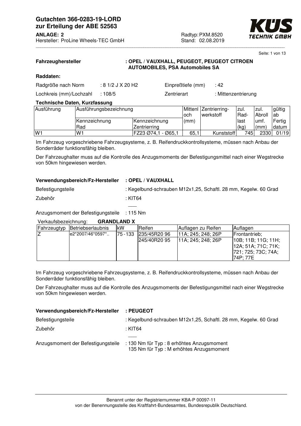 Dieses ABE gehört zur Felge Proline PXM.8520 in 8.5Jx2 ET0 mit KBA 52563. Die Seite ist dafür gedacht, dass du schnell prüfen kannst, ob KBA, Design und Größe zu deiner Felge passen und danach direkt das richtige PDF lädst.