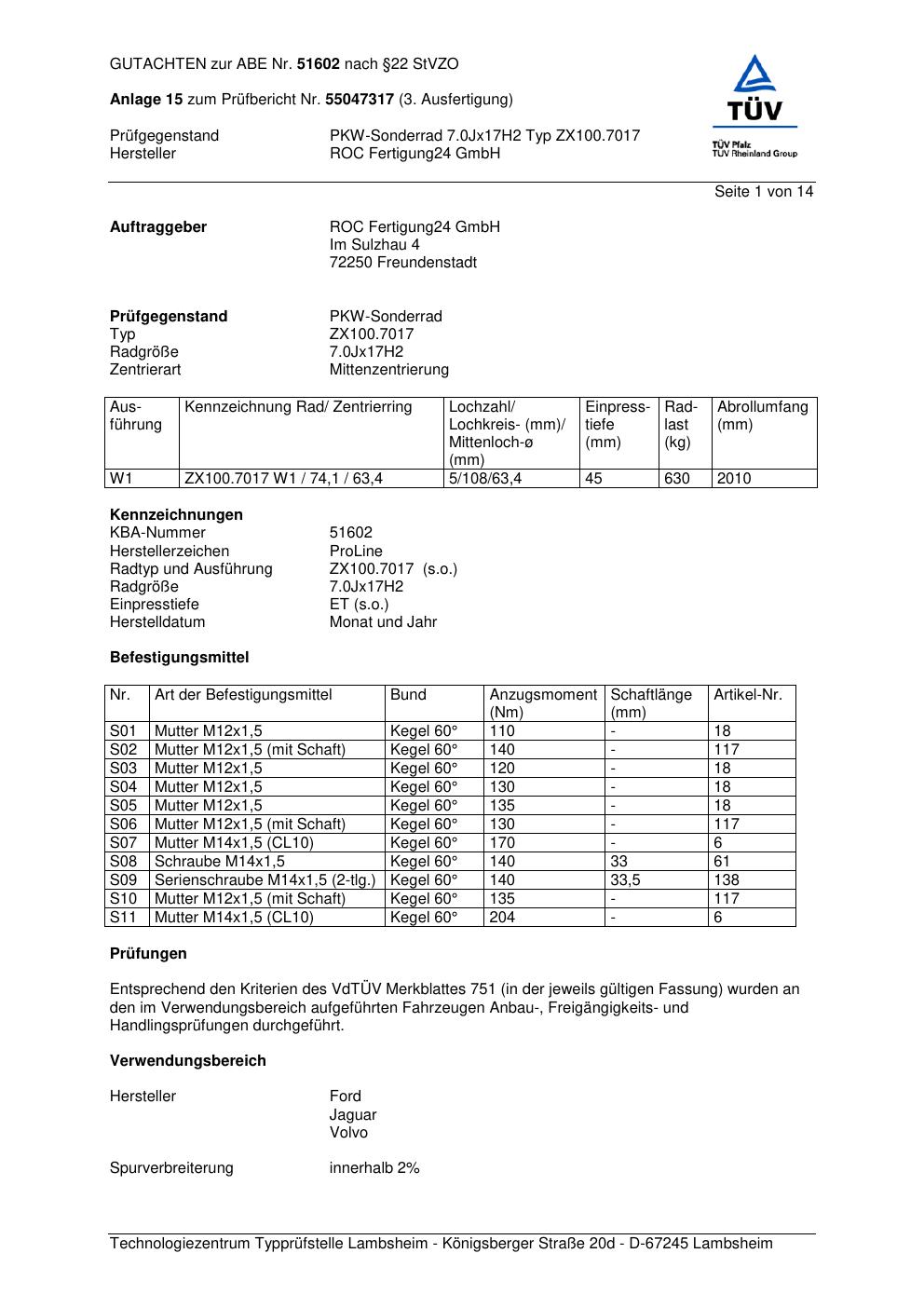 Dieses ABE gehört zur Felge Proline ZX100.7017 in 7Jx17 ET0 mit KBA 51602. Die Seite ist dafür gedacht, dass du schnell prüfen kannst, ob KBA, Design und Größe zu deiner Felge passen und danach direkt das richtige PDF lädst.