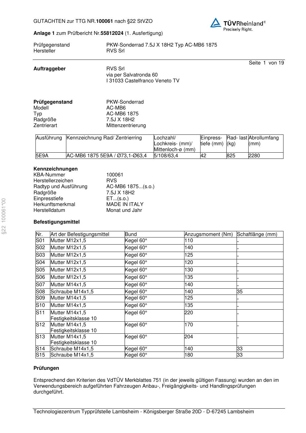 teilegutachten 100061 RVS AC-MB6 1875