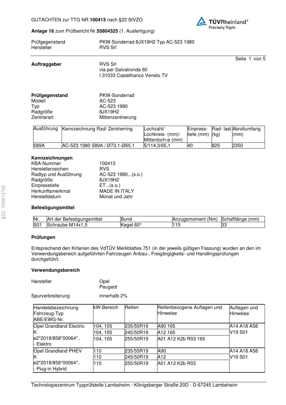 teilegutachten 100413 RVS AC-523 198 0