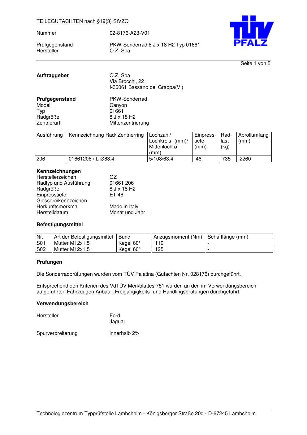 Dieses Gutachten (teilegutachten) bezieht sich auf die Alufelge ATS 01661 in der Ausführung 8Jx18 ET 0, Mittenloch 0 mm . Im PDF findest du typischerweise zulässige Reifengrößen, Auflagen/Anbauhinweise und – je nach Dokument – Hinweise zur Eintragung.