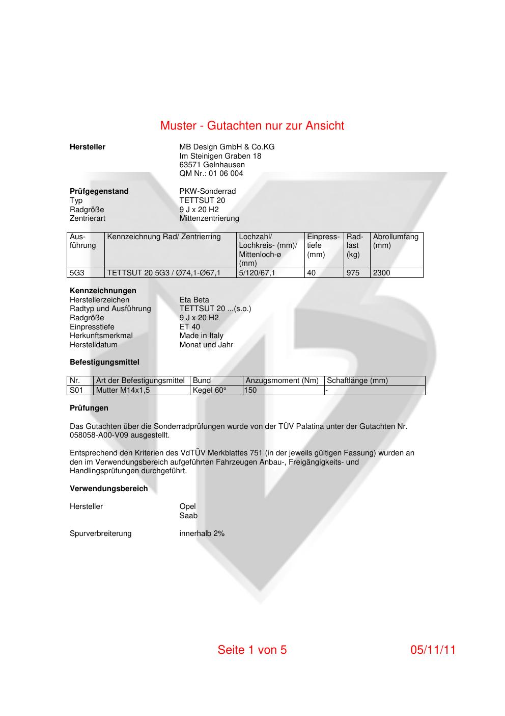 Felgengutachten / teilegutachten für Alufelgen co-rod TETTSUT 20 (9Jx2 ET 0, Mittenloch 0 mm) (Zertifikatsnummer 058058-a00-v09). Hier kostenlos als PDF herunterladen. Der Download-Link ist 24 Stunden gültig und kann bis zu zwei Mal verwendet werden.