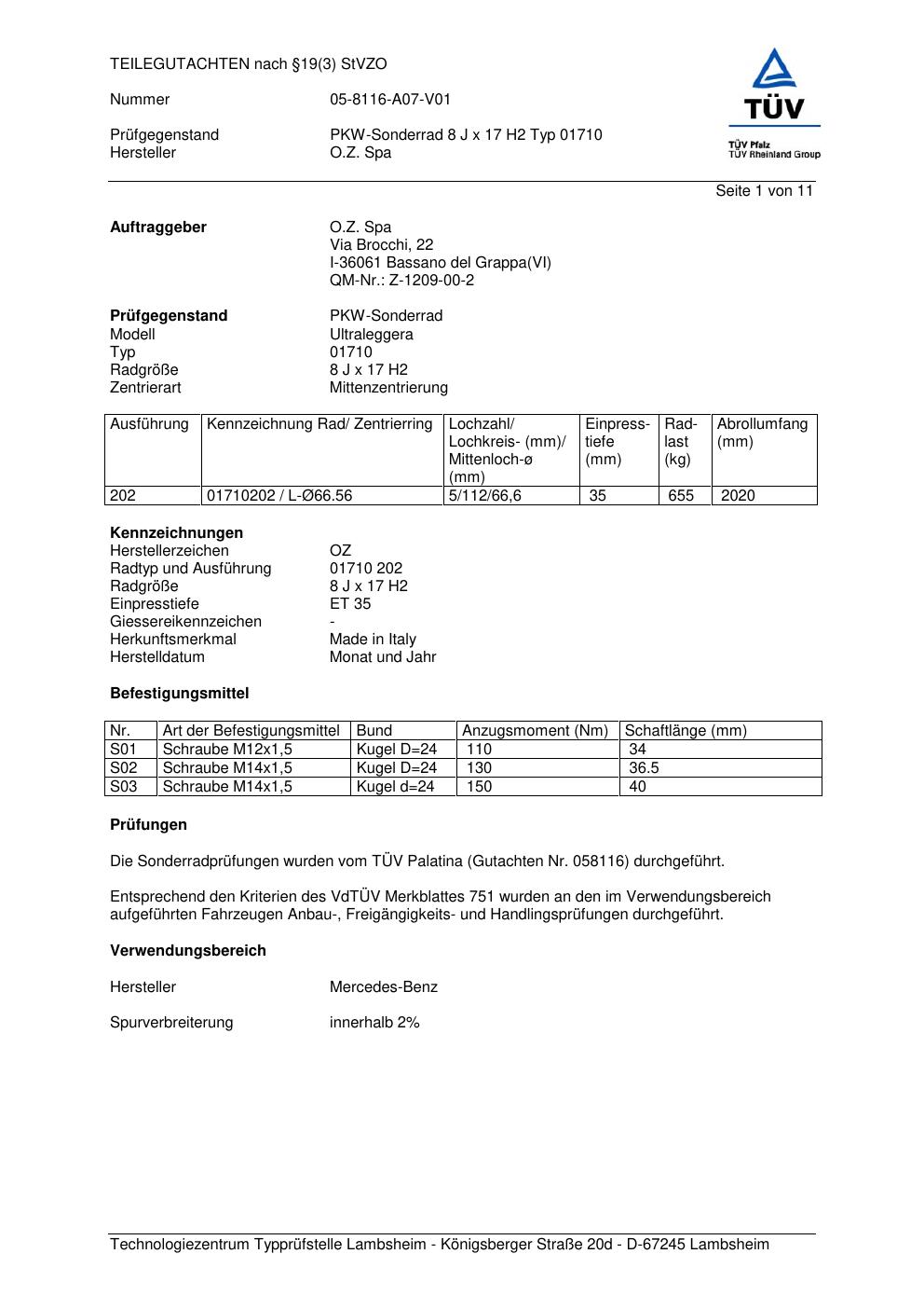 Felgengutachten / teilegutachten für Alufelgen ATS 01710 (8Jx17 ET 0, Mittenloch 0 mm) (Zertifikatsnummer 058116). Hier kostenlos als PDF herunterladen. Der Download-Link ist 24 Stunden gültig und kann bis zu zwei Mal verwendet werden.