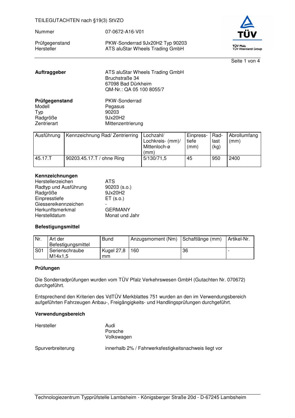 teilegutachten 070672 ATS 90203