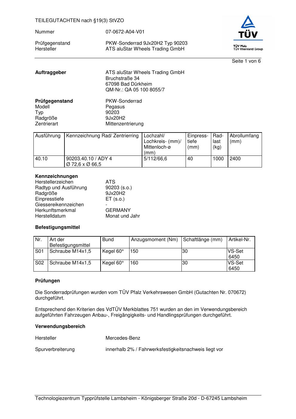 teilegutachten 070672 ATS 90203