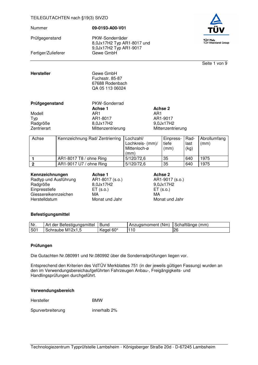 Felgengutachten / teilegutachten für Alufelgen co-rod AR1-8017 (8Jx17 ET 0, Mittenloch 0 mm) (Zertifikatsnummer 080991). Hier kostenlos als PDF herunterladen. Der Download-Link ist 24 Stunden gültig und kann bis zu zwei Mal verwendet werden.