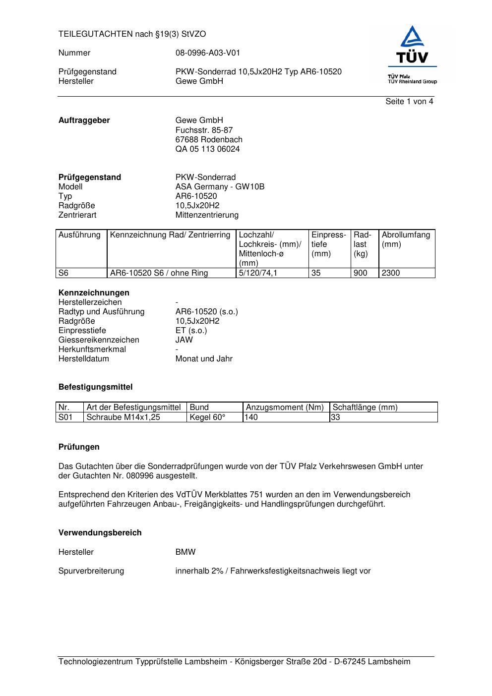 teilegutachten 080996 co-rod AR6-105 20