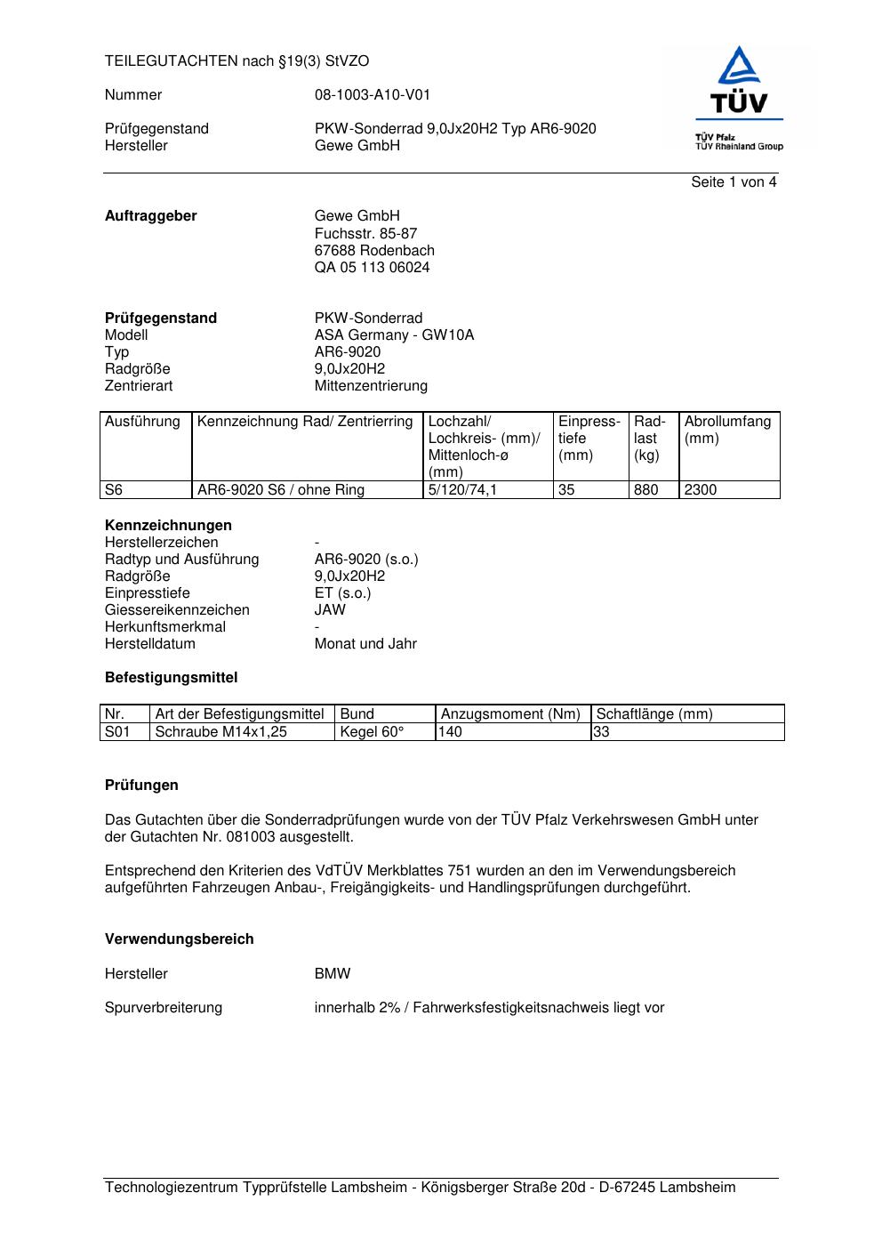 teilegutachten 081003 co-rod AR6-9020