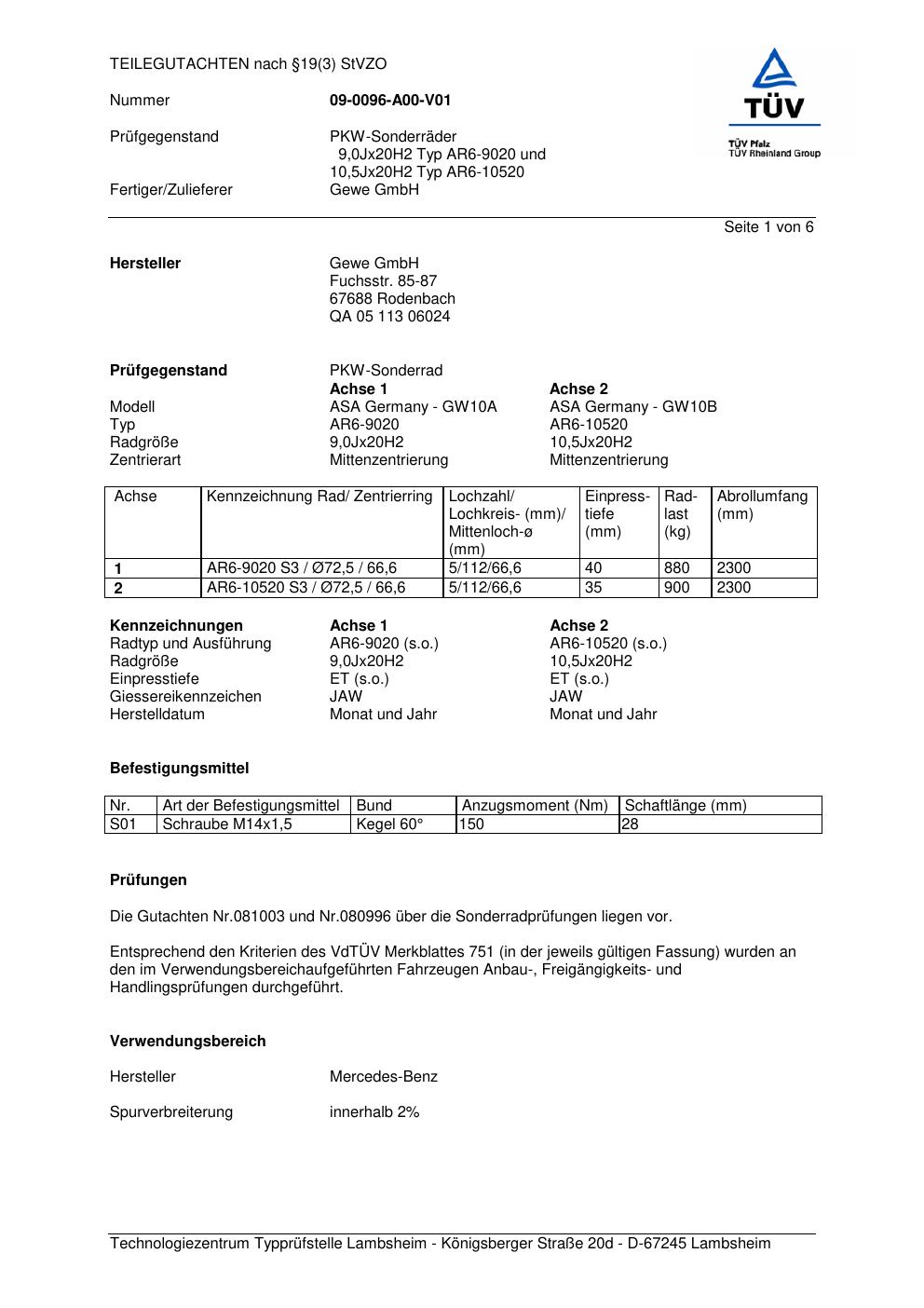 teilegutachten 081003 co-rod AR6-9020