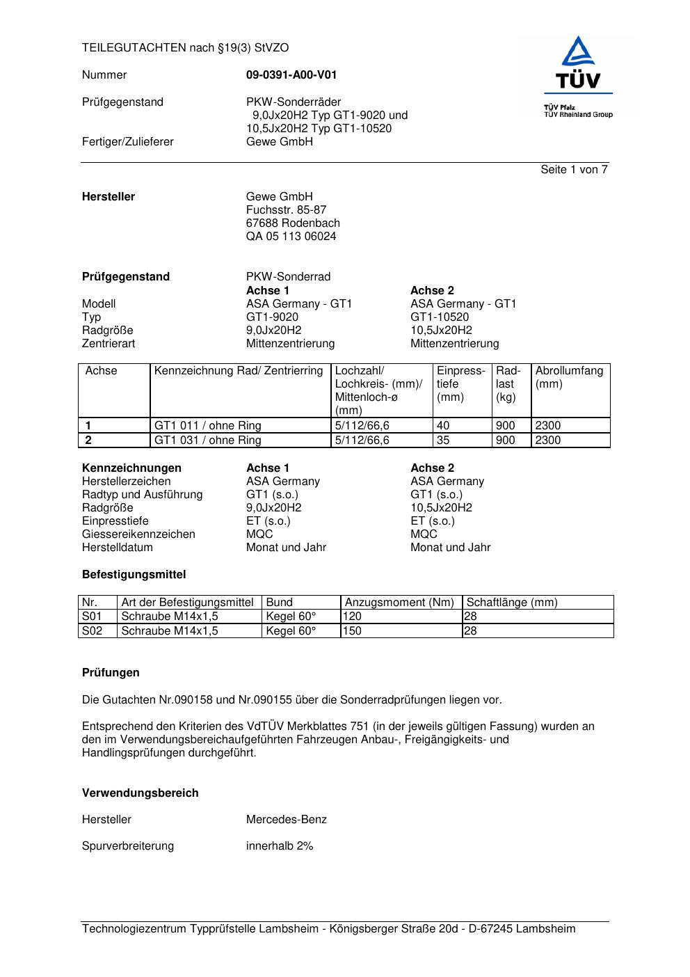 Felgengutachten / teilegutachten für Alufelgen co-rod GT1-9020 (9Jx2 ET 0, Mittenloch 0 mm) (Zertifikatsnummer 090158). Hier kostenlos als PDF herunterladen. Der Download-Link ist 24 Stunden gültig und kann bis zu zwei Mal verwendet werden.