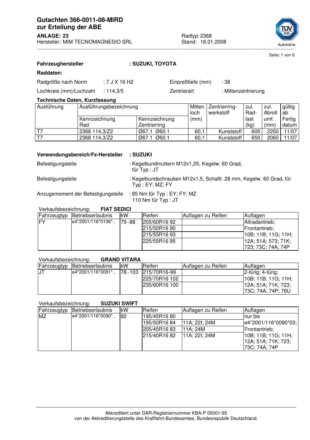 Dieses Gutachten (teilegutachten) bezieht sich auf die Alufelge ATS 2368 in der Ausführung 7Jx16 ET 0, Mittenloch 0 mm . Im PDF findest du typischerweise zulässige Reifengrößen, Auflagen/Anbauhinweise und – je nach Dokument – Hinweise zur Eintragung.
