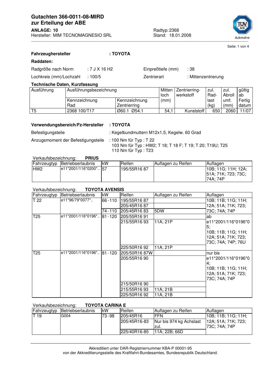 Felgengutachten / teilegutachten für Alufelgen ATS 2368 (7Jx16 ET 0, Mittenloch 0 mm) (Zertifikatsnummer 366-0011-08-mird). Hier kostenlos als PDF herunterladen. Der Download-Link ist 24 Stunden gültig und kann bis zu zwei Mal verwendet werden.