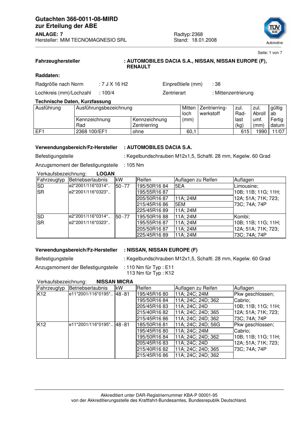 Felgengutachten / teilegutachten für Alufelgen ATS 2368 (7Jx16 ET 0, Mittenloch 0 mm) (Zertifikatsnummer 366-0011-08-mird). Hier kostenlos als PDF herunterladen. Der Download-Link ist 24 Stunden gültig und kann bis zu zwei Mal verwendet werden.