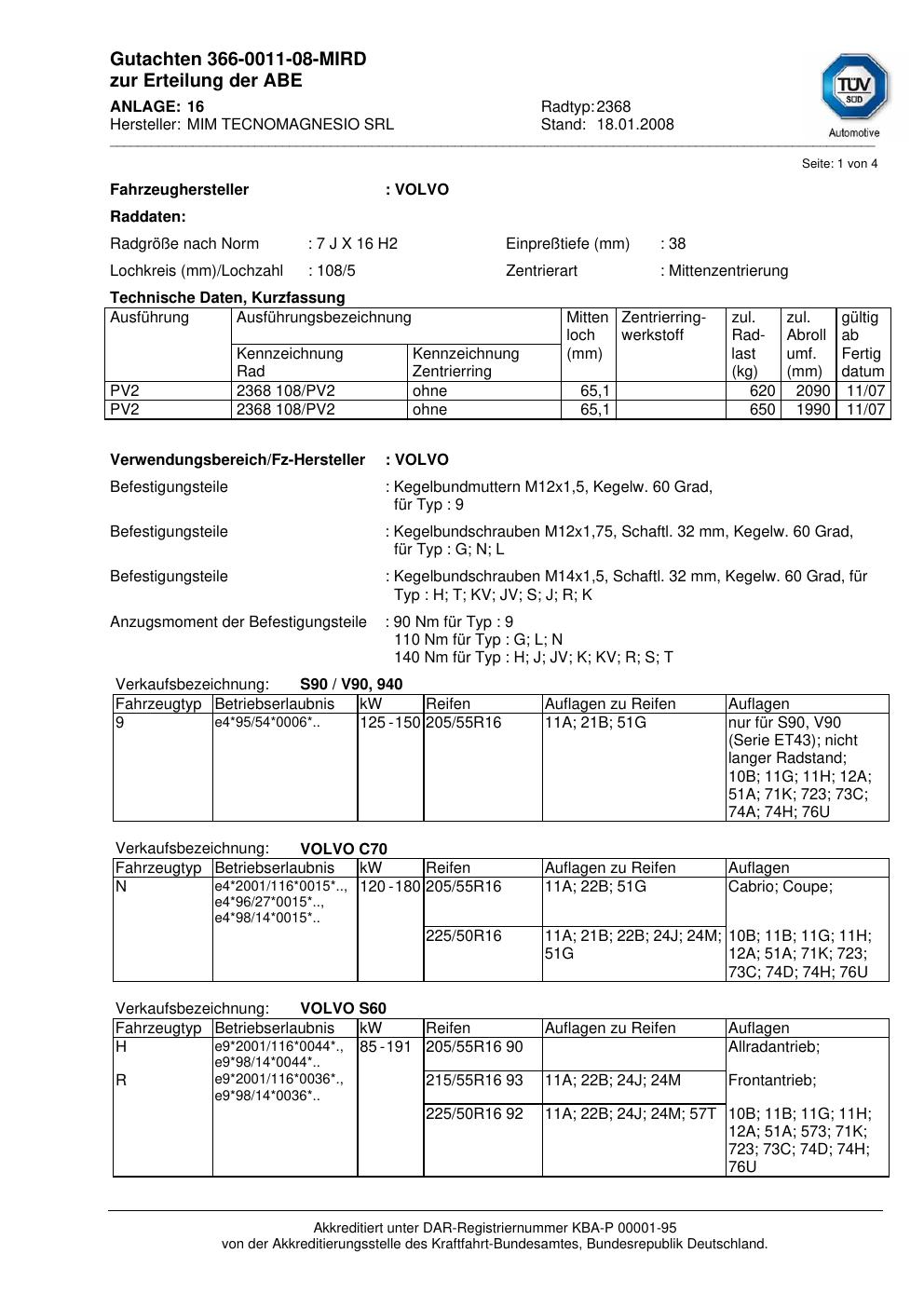 Felgengutachten / teilegutachten für Alufelgen ATS 2368 (7Jx16 ET 0, Mittenloch 0 mm) (Zertifikatsnummer 366-0011-08-mird). Hier kostenlos als PDF herunterladen. Der Download-Link ist 24 Stunden gültig und kann bis zu zwei Mal verwendet werden.