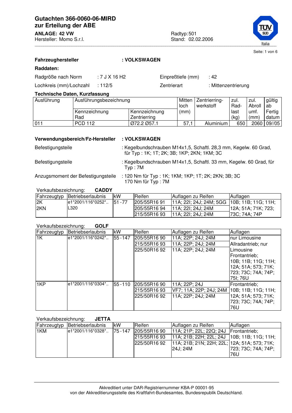 teilegutachten 366-0060-06-mird Momo 501