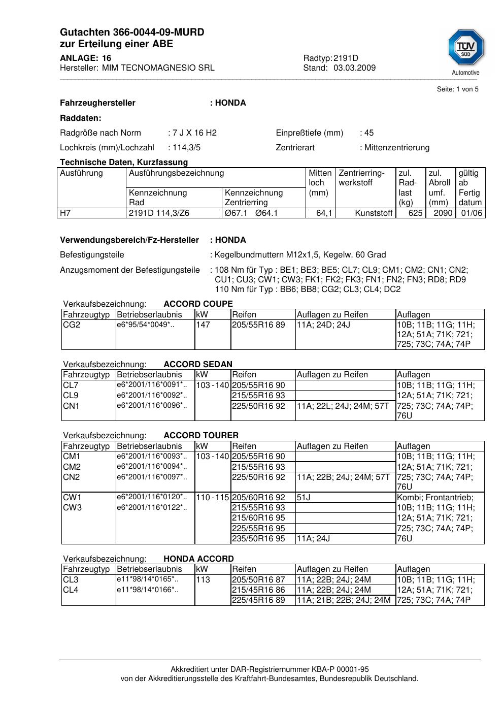 Dieses Gutachten (teilegutachten) bezieht sich auf die Alufelge ATS 2191D in der Ausführung 7Jx16 ET 0, Mittenloch 0 mm . Im PDF findest du typischerweise zulässige Reifengrößen, Auflagen/Anbauhinweise und – je nach Dokument – Hinweise zur Eintragung.