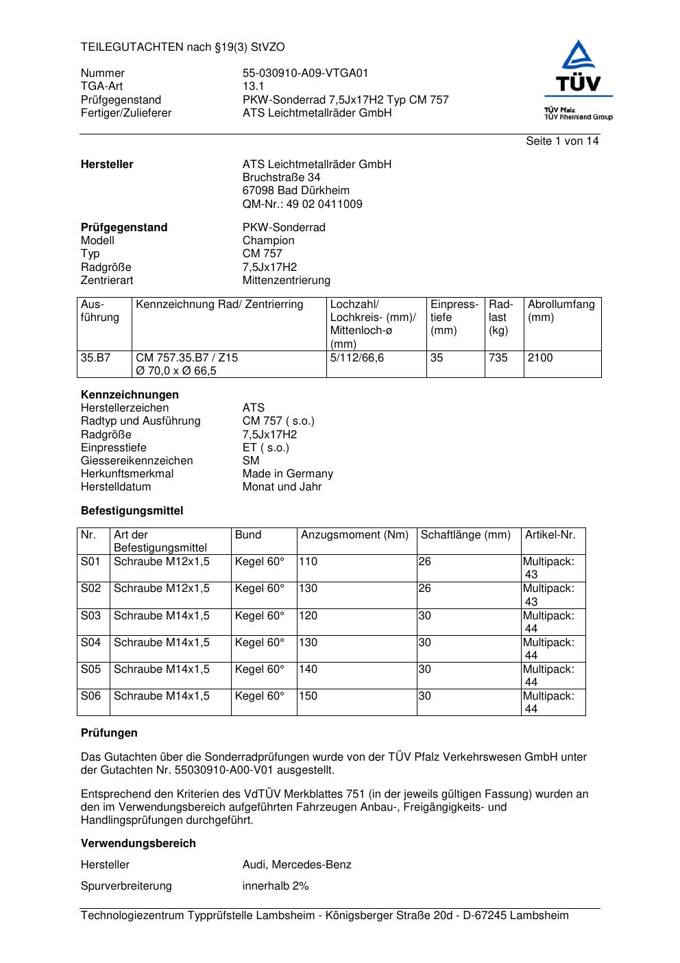 teilegutachten 55030910-a00-v01 ATS CM 757