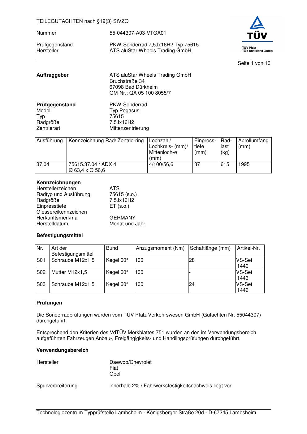 teilegutachten 55044307 ATS 75615