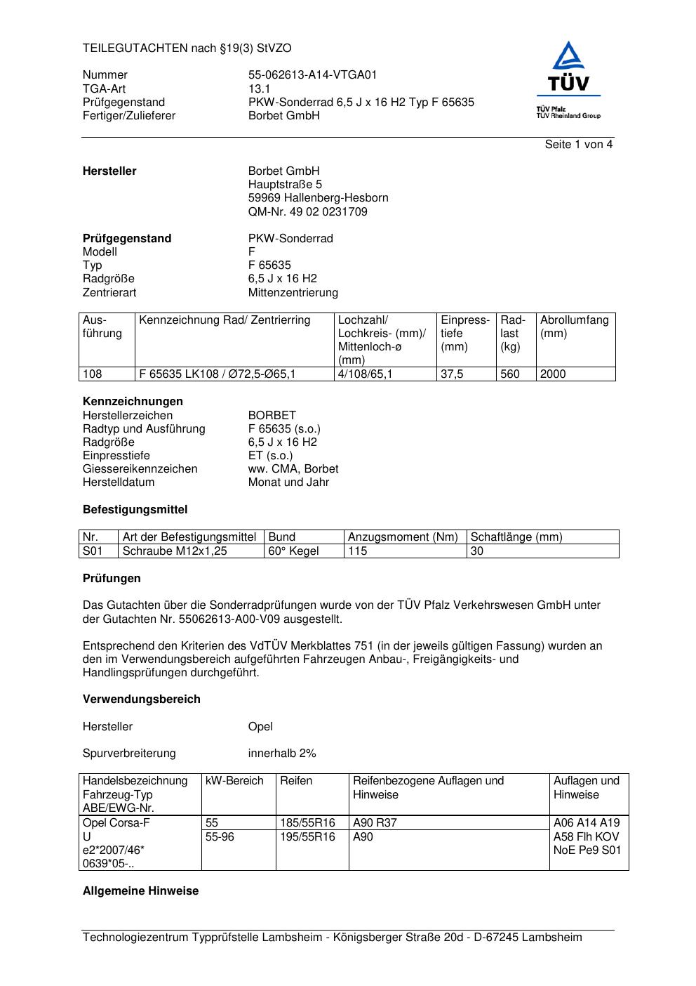 teilegutachten 55062613-a00-v09 Borbet F 65 635