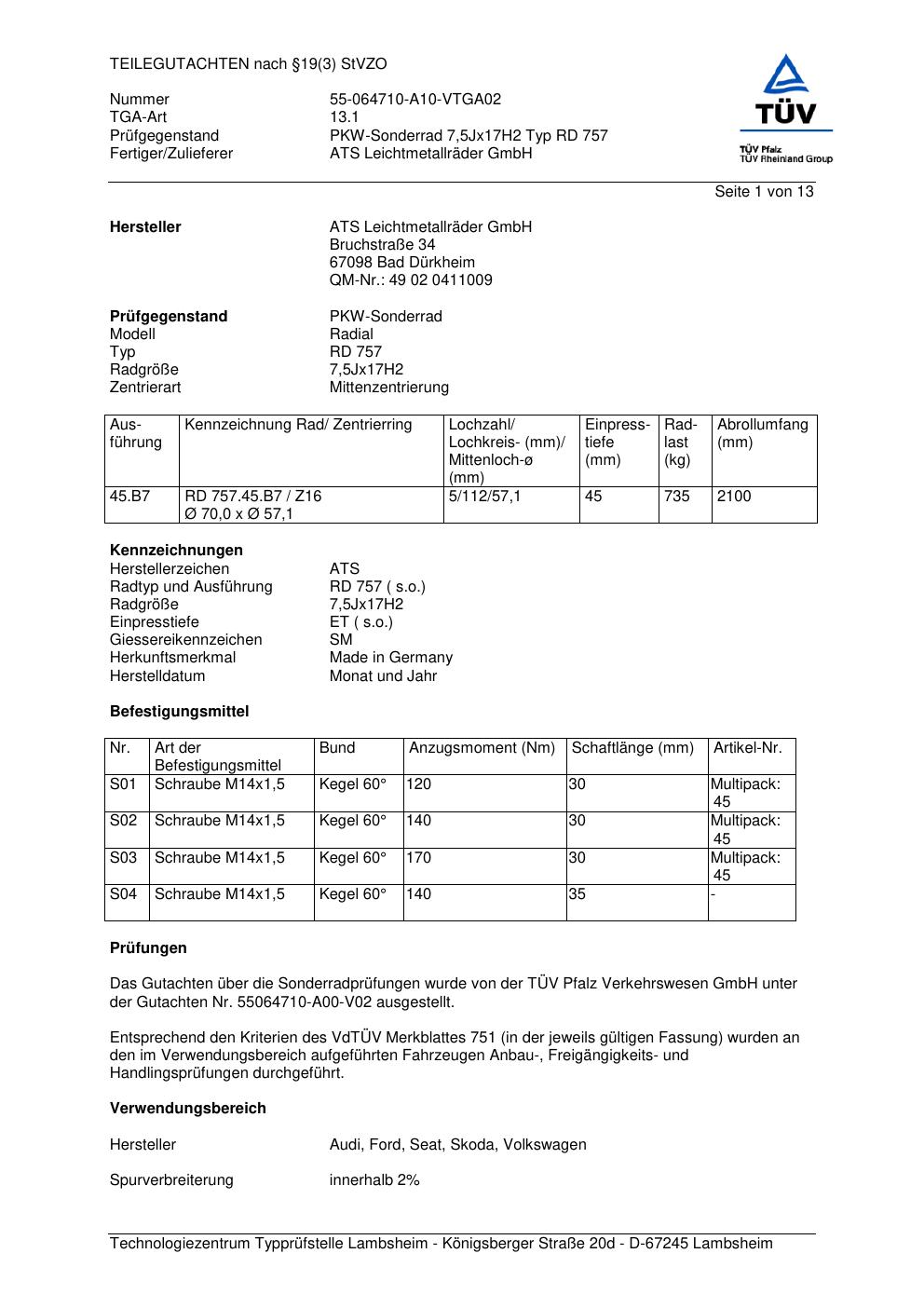 teilegutachten 55064710-a00-v02 ATS RD 757